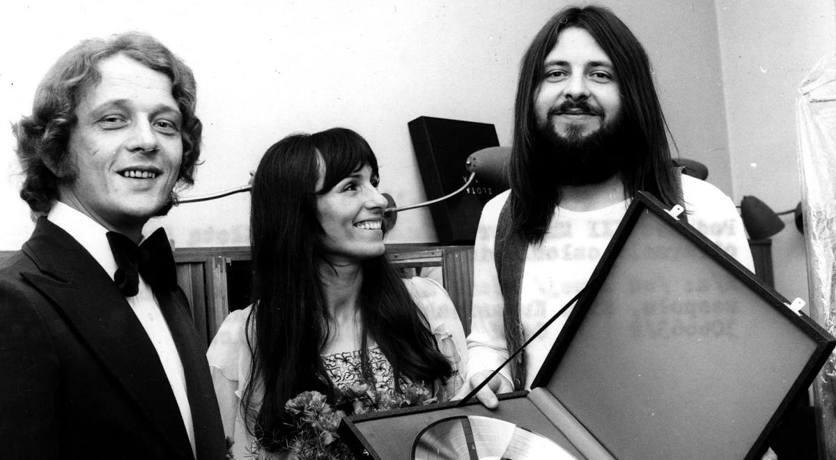 Zespół Breakout odbiera Złotą Płytę w 1974 roku. Od lewej: perkusista Józef Hajdasz, wokalistka Mira Kubasińska i śpiewający gitarzysta Tadeusz Nalepa.