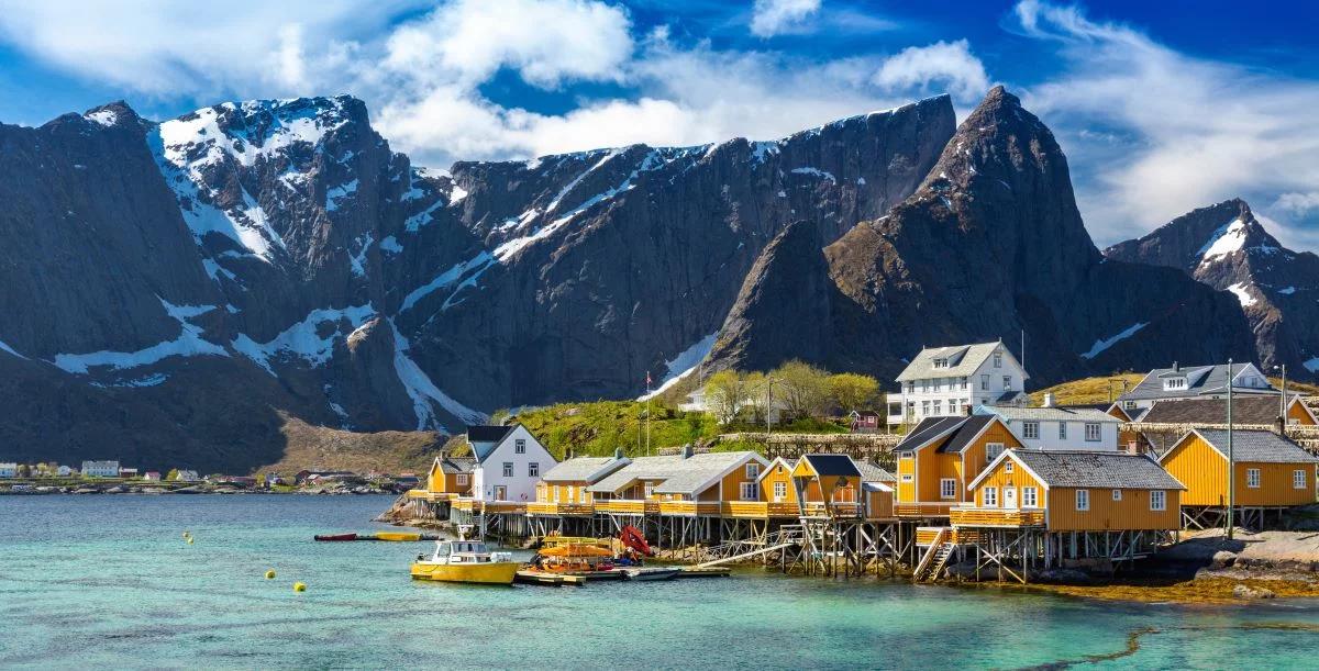 Domki na wyspie Sakrisøy, zaliczanej do archipelagu Lofoty