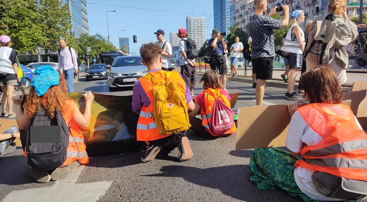 Protest aktywistów warszawskiej grupy Ostatnie Pokolenie, 18 lipca 2024. Blokada ulicy Marszałkowskiej
